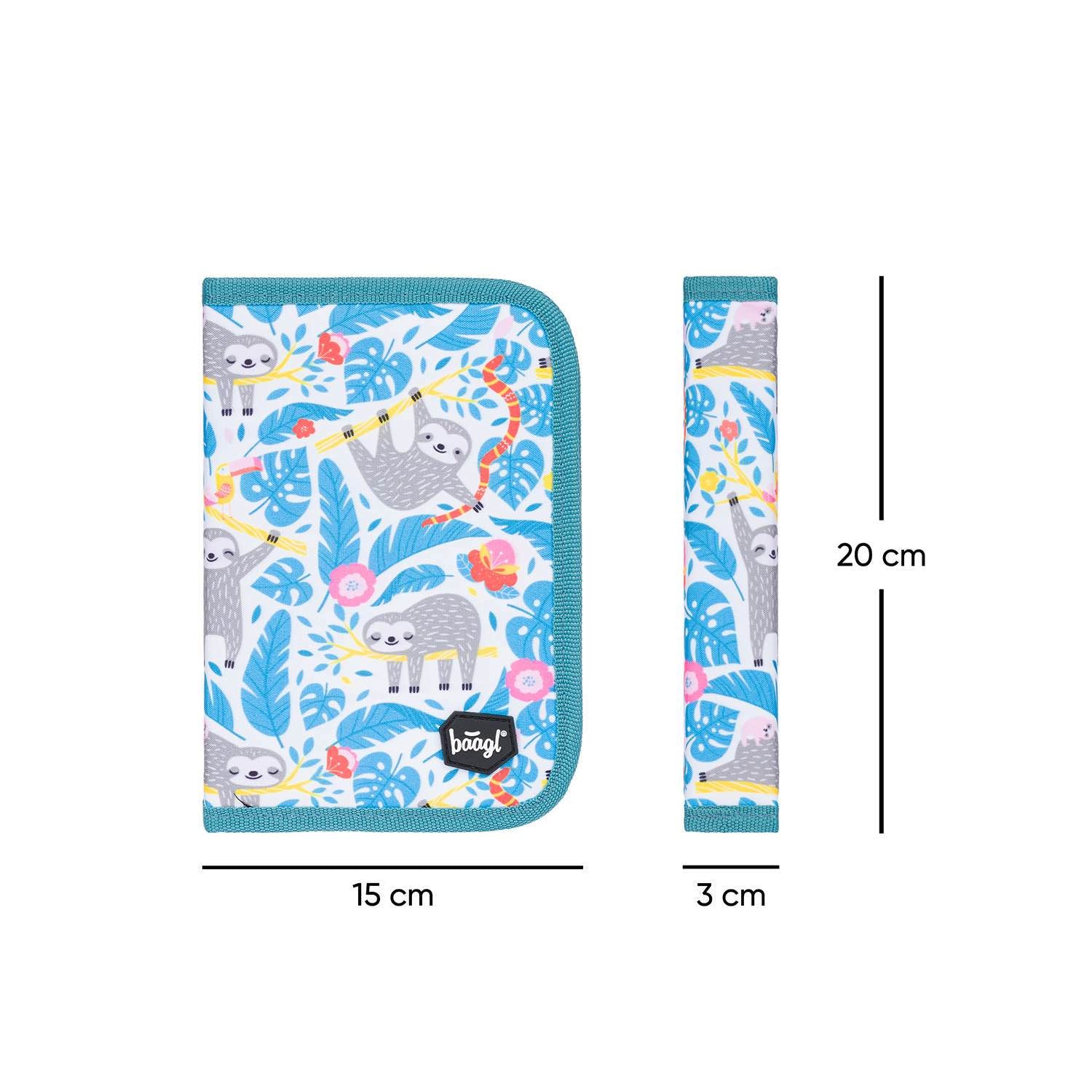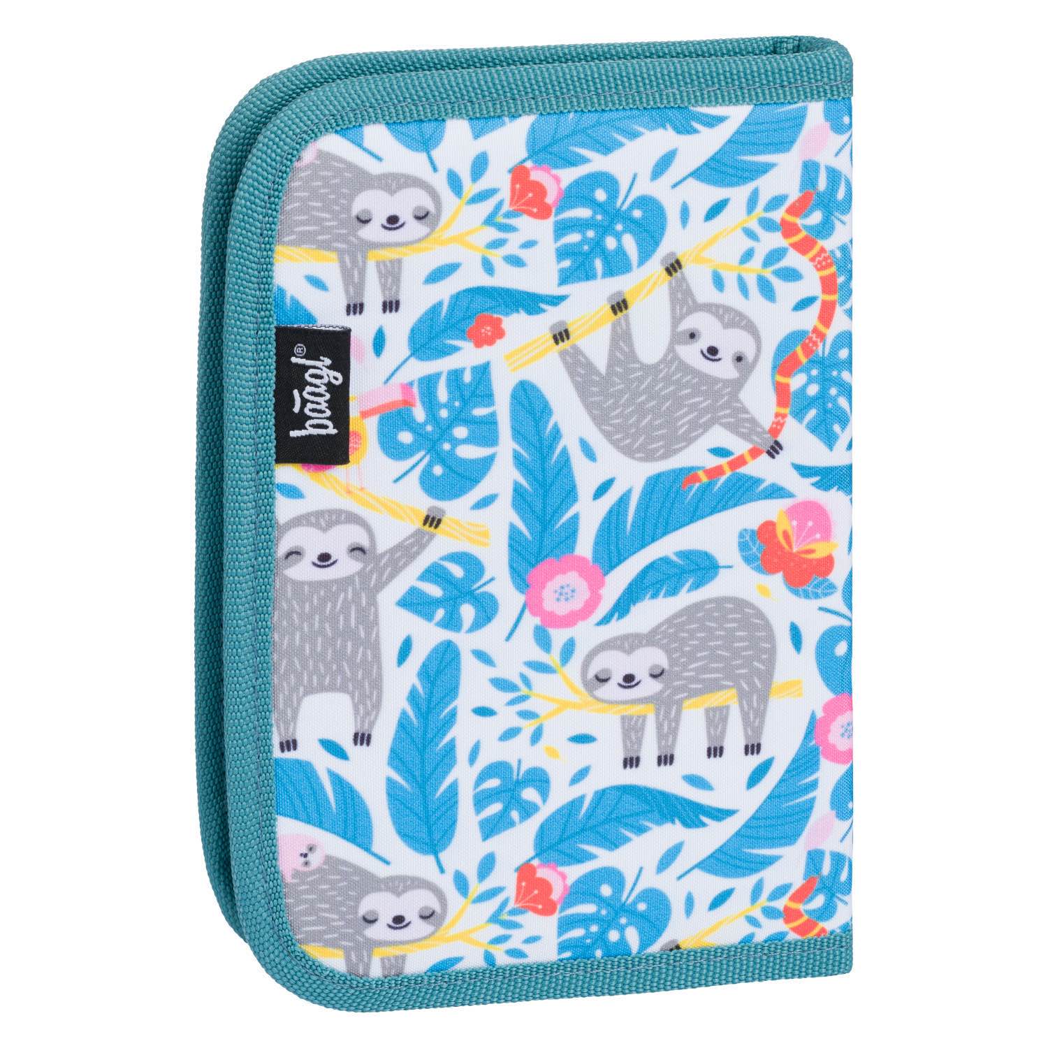 Školní penál klasik dvě chlopně Lenochod v modré barvě, vhodný pro školačky od první třídy ZŠ.