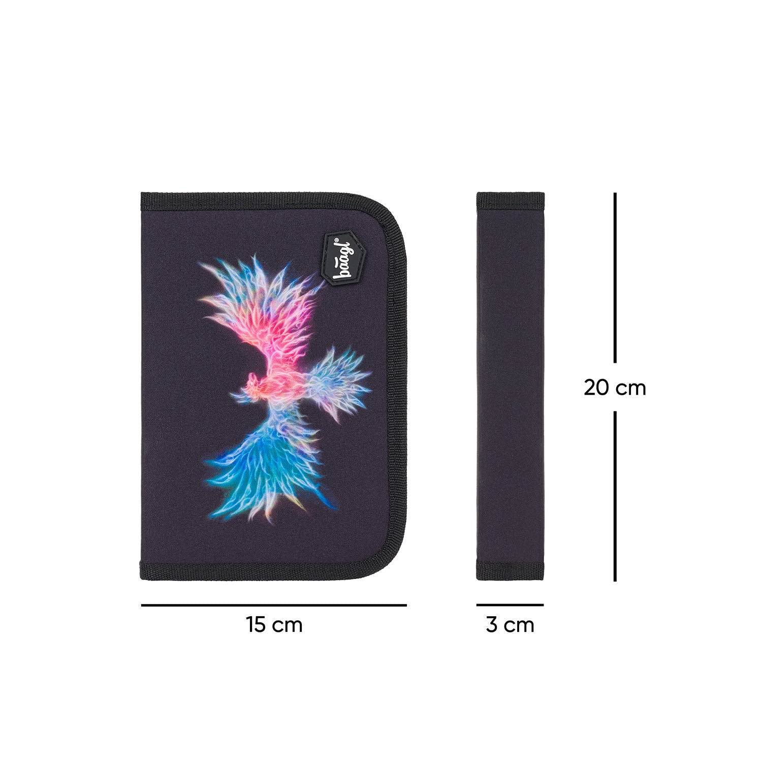 Černý penál klasik s potiskem bájného ptáka Fénixe.