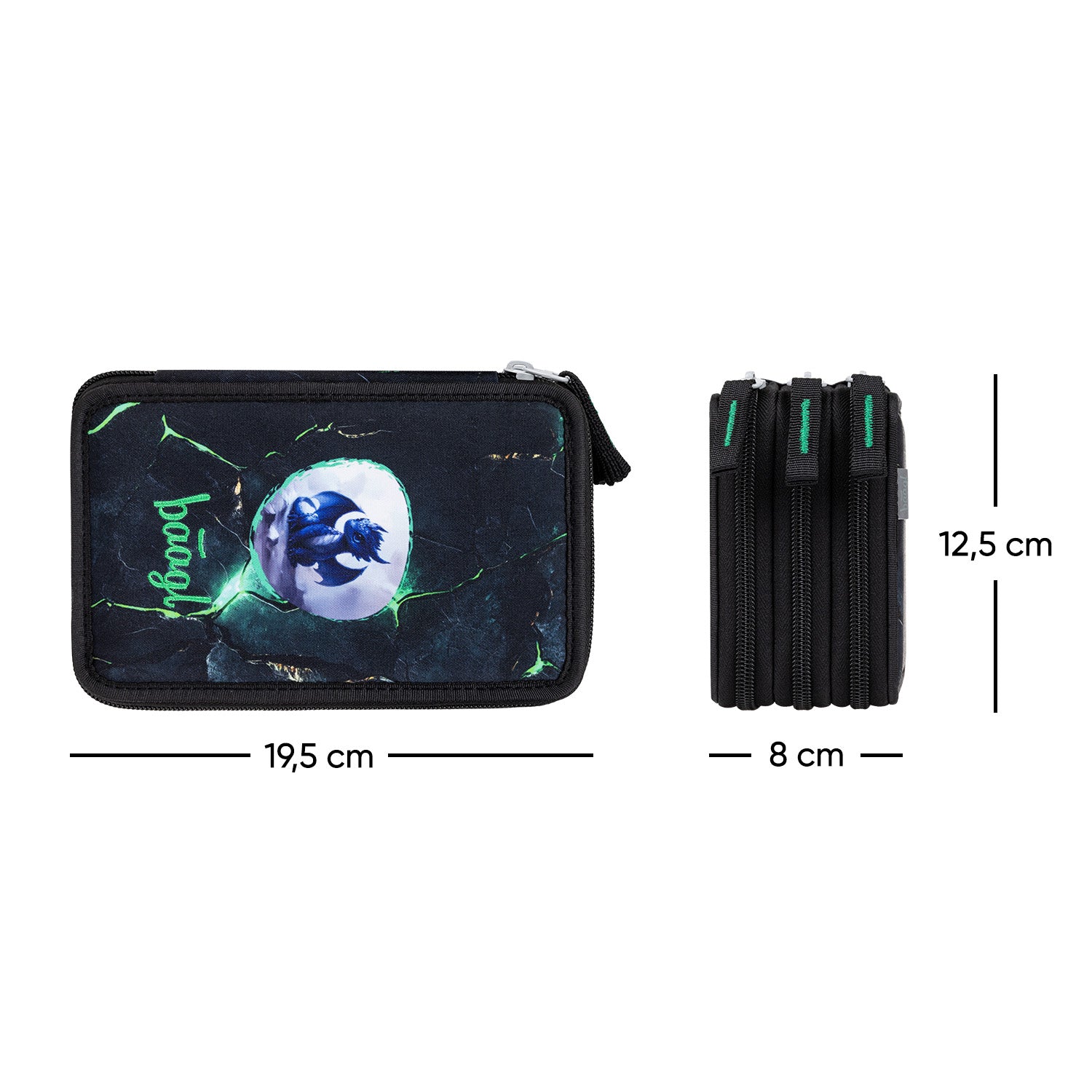 Třípatrový penál s motivem roztomilého dráčka je vybaven značkovými zipy YKK a díky zesílenému hřbetu nabízí dostatek prostoru pro přehlednou organizaci psacích potřeb.