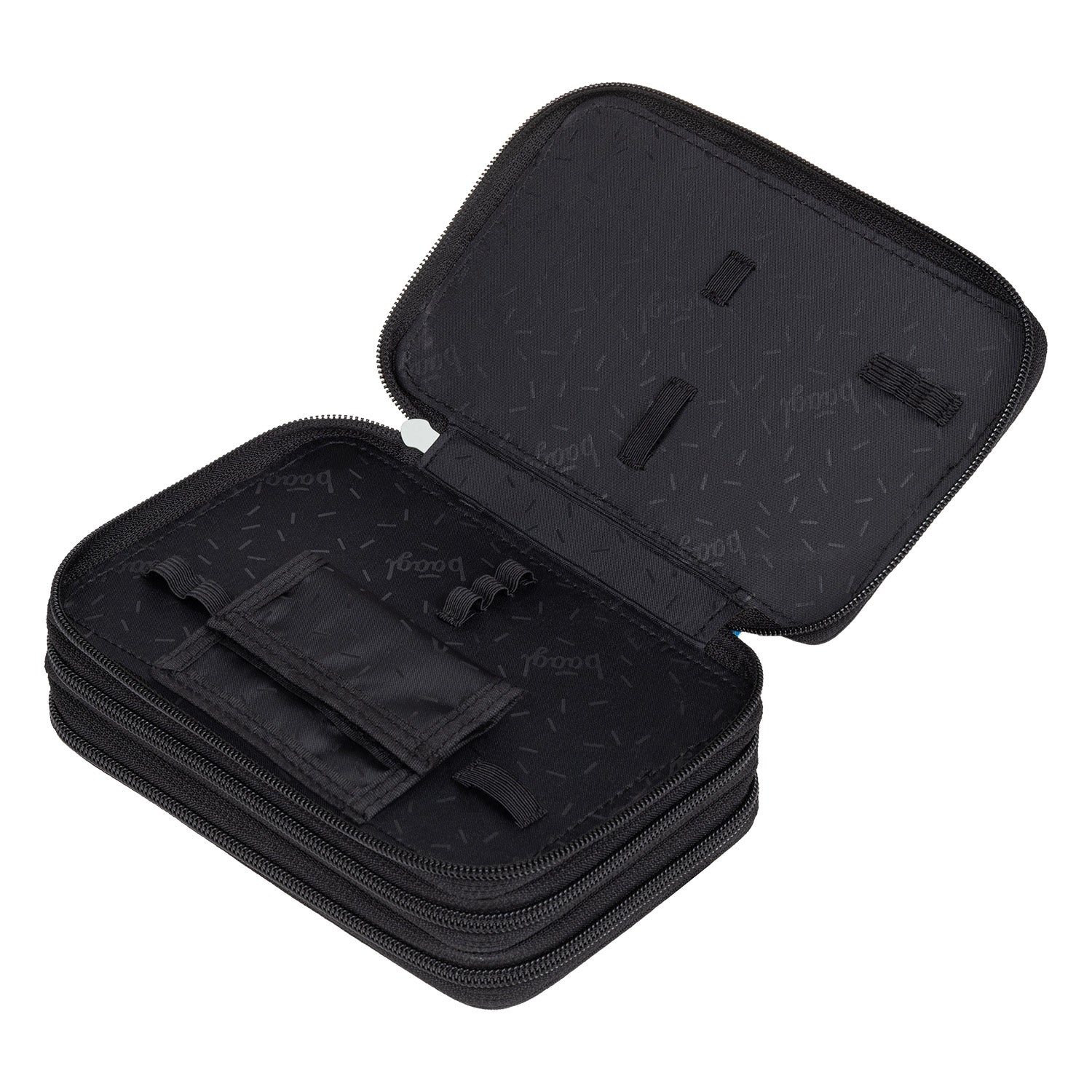 • Extra prostorný třípatrový penál na všechny psací potřeby.