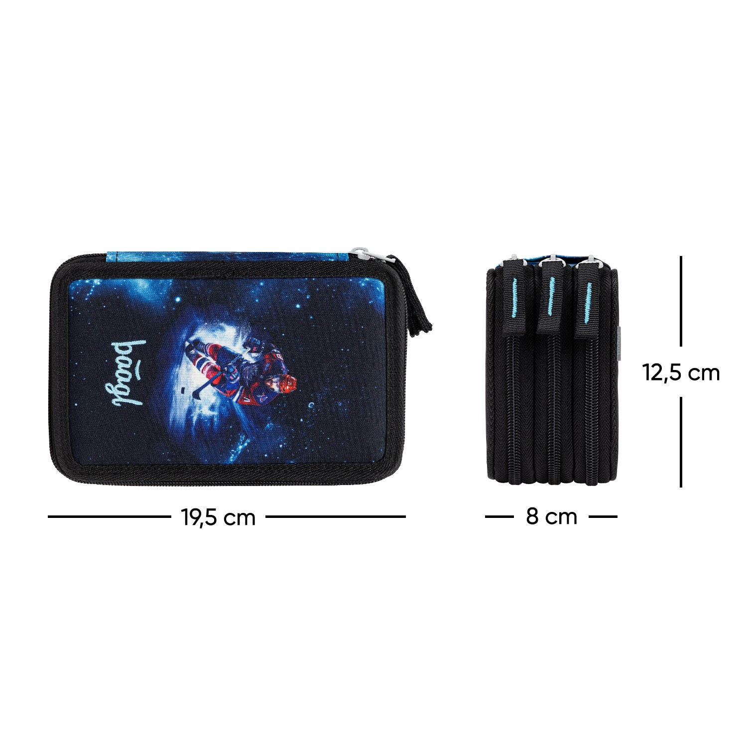 Třípatrový penál s hokejovým motivem a zesíleným hřbetem poskytuje dostatek místa pro uložení psacích potřeb i veškerých drobností. Značkové zipy YKK zajišťují dlouhou životnost.
