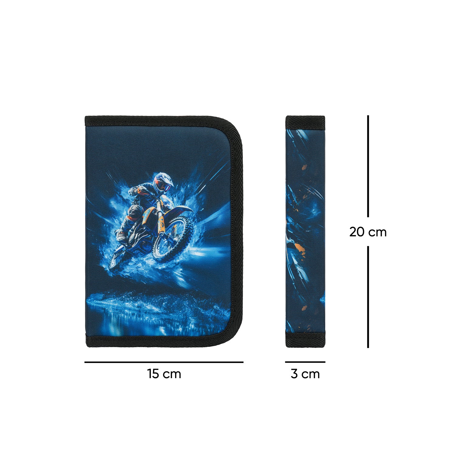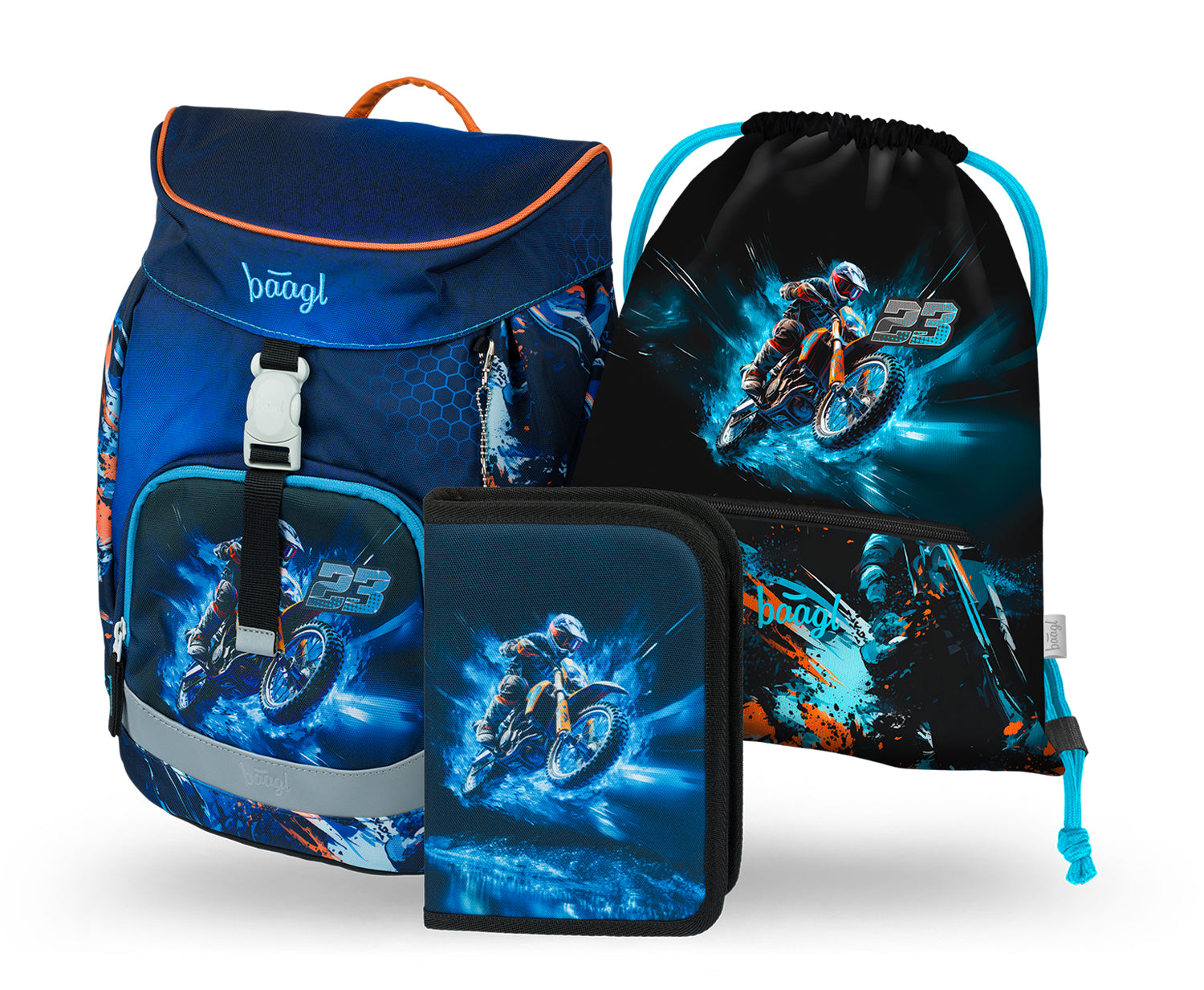 Zvýhodněný školní set zahrnující ultralehký školní batůžek Airy, penál a sáček na obuv s obrázkem motokrosového závodníka. Doporučujeme dětem již od první třídy ZŠ.