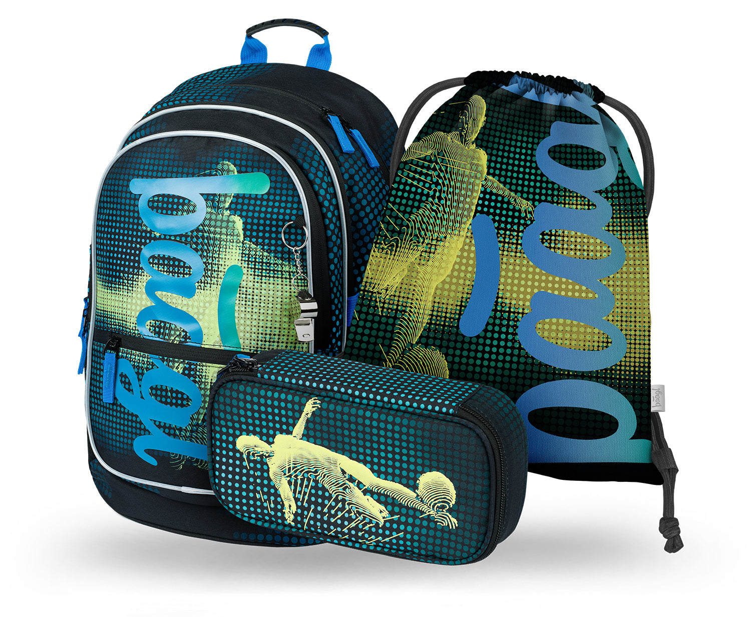 Chlapecký školní batoh Core Football player ve výhodním setu spolu s penálem a sáčkem na obuv.