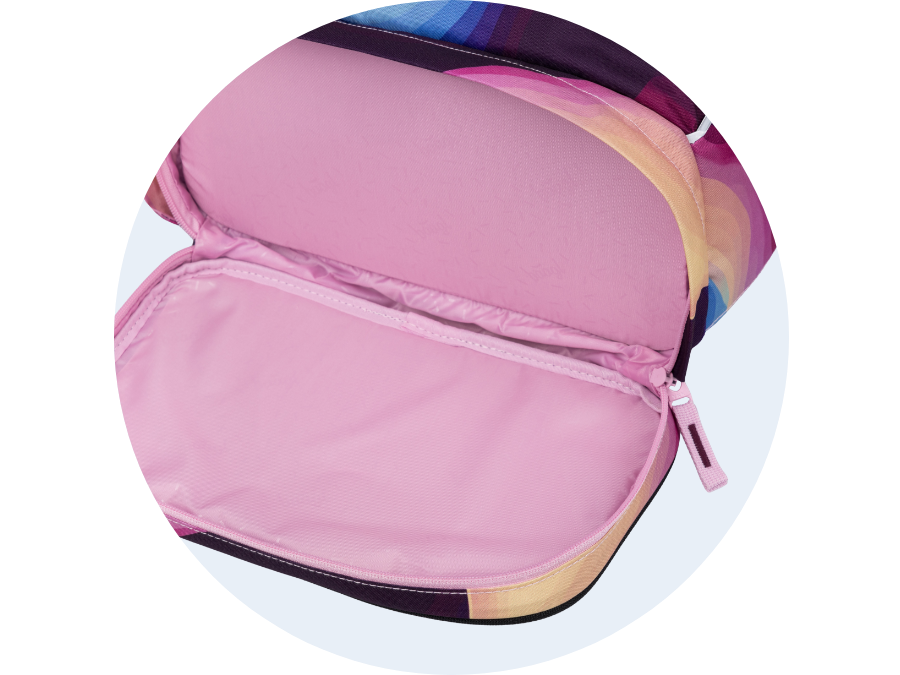 Tříkomorový dívčí batoh Cubic Abstract ve fialovo-růžovém barevném provedení se saténovými detaily. Batoh je vhodný již od 3. třídy ZŠ. • Ergonomicky tvarovaná záda.