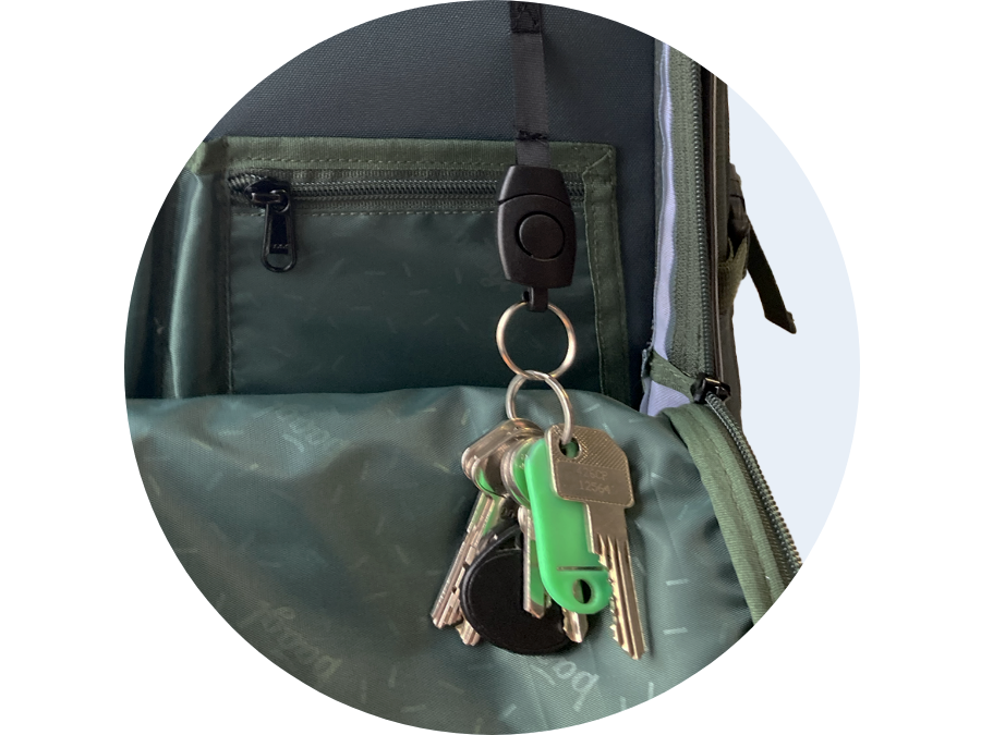 • Přední komora batohu obsahuje praktický organizér a také poutko s karabinou na zavěšení klíčů. Tuto karabinu je možné odepnout a používat samostatně.