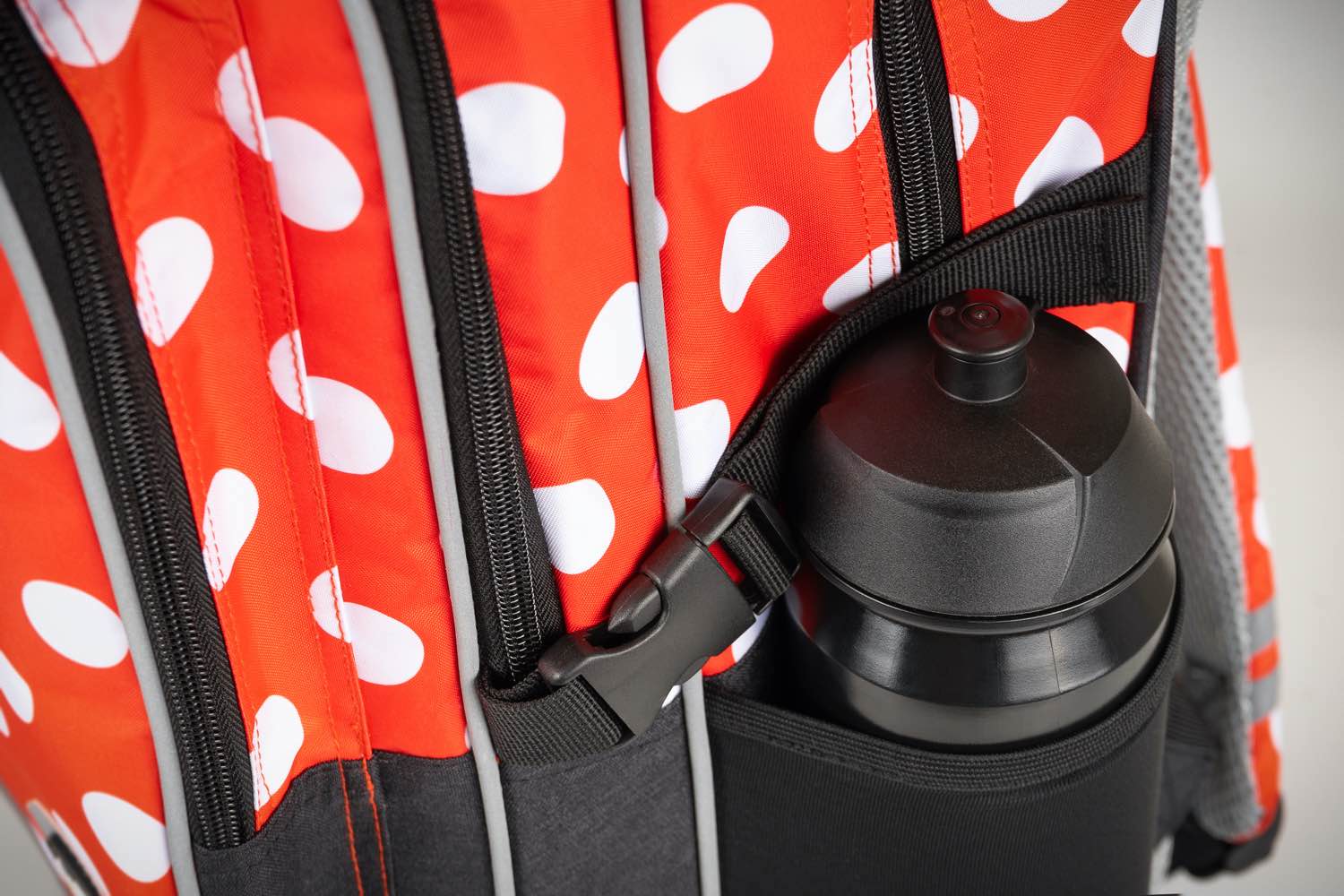 • Boční kapsy z elastického materiálu, které jsou vhodné pro jednu z našich láhví na pití.