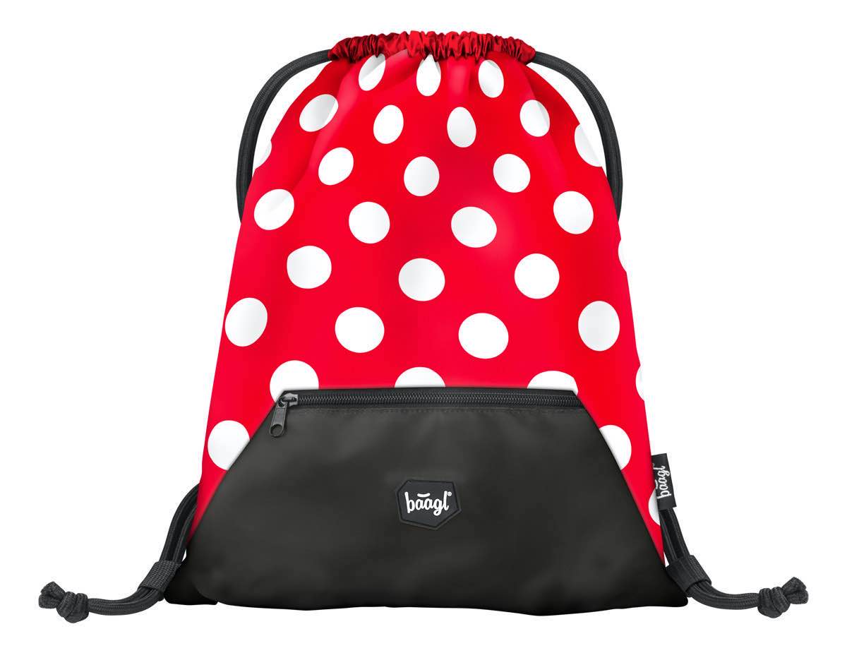 • Sáček na cvičky nebo přezůvky v červené barvě s bílými puntíky.