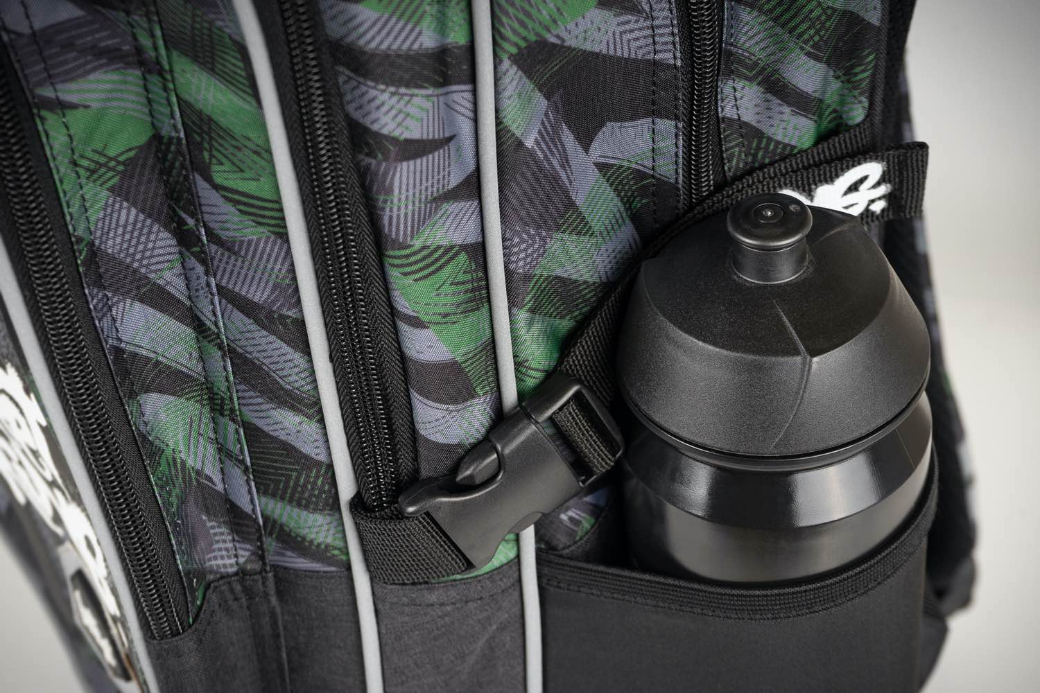 • Boční kapsy z elastického materiálu, které jsou vhodné pro jednu z našich láhví na pití.