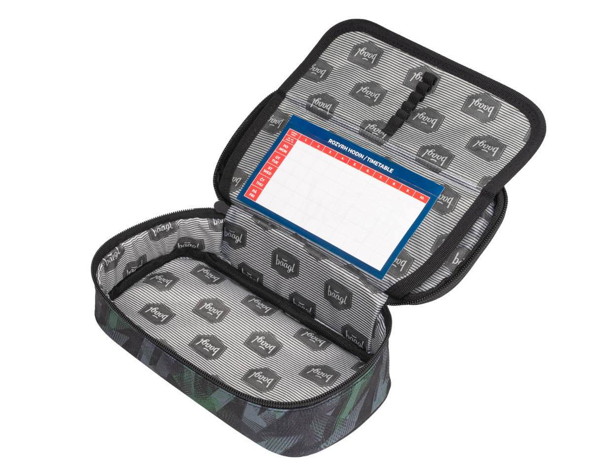 • Pevný penál na zip s dvojitou výklopnou chlopní a s army potiskem.