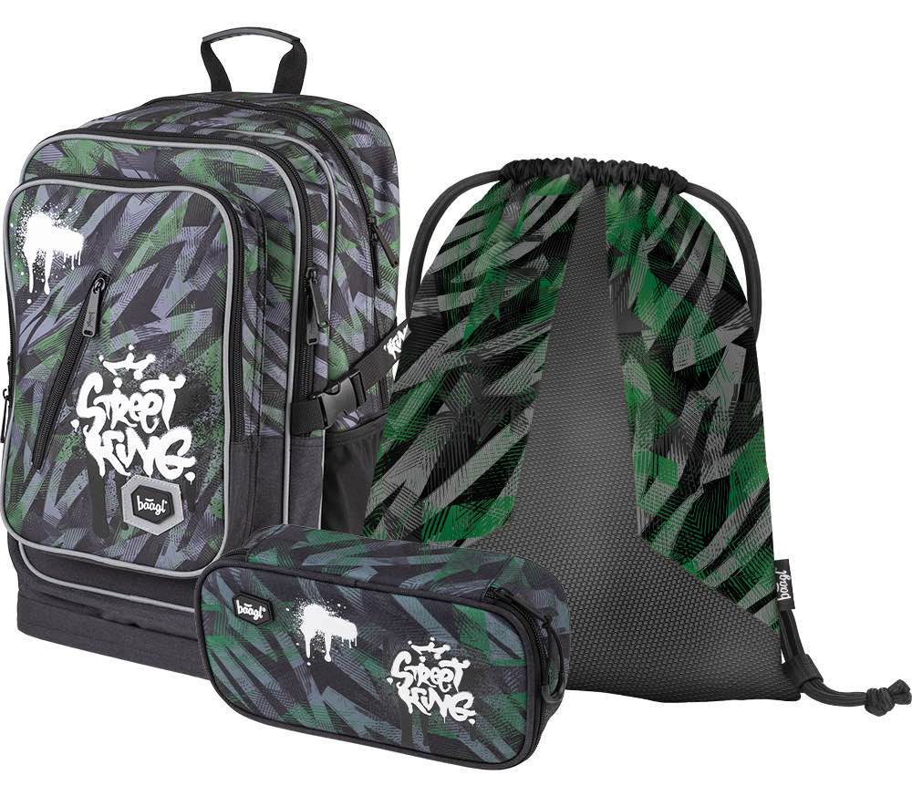 Chlapecký školní set Cubic Street King vhodný od 3. třídy 1. stupně ZŠ a také pro 2. stupeň ZŠ. Obsahuje školní batoh, penál a sáček na obuv.