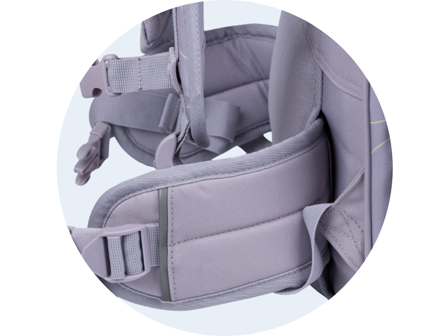 • Batoh z recyklovaného, voděodolného materiálu je opatřen řadou reflexních prvků pro maximální bezpečnost dítěte i za snížené viditelnosti.