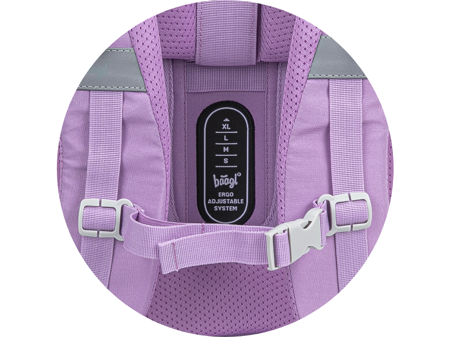 • Posuvný zádový systém ERGO ADJUSTABLE SYSTEM umožňuje nastavení optimální polohy popruhů vzhledem k výšce dítěte.