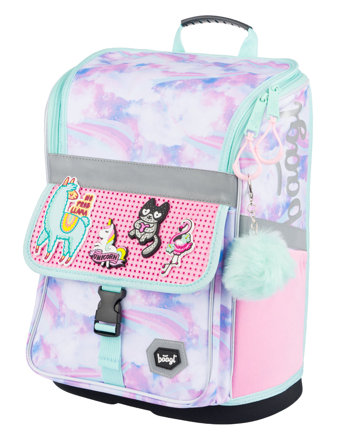 • Ergonomická školní aktovka s vyztuženým tělem, vnitřním organizérem a třemi oddělenými kapsami.