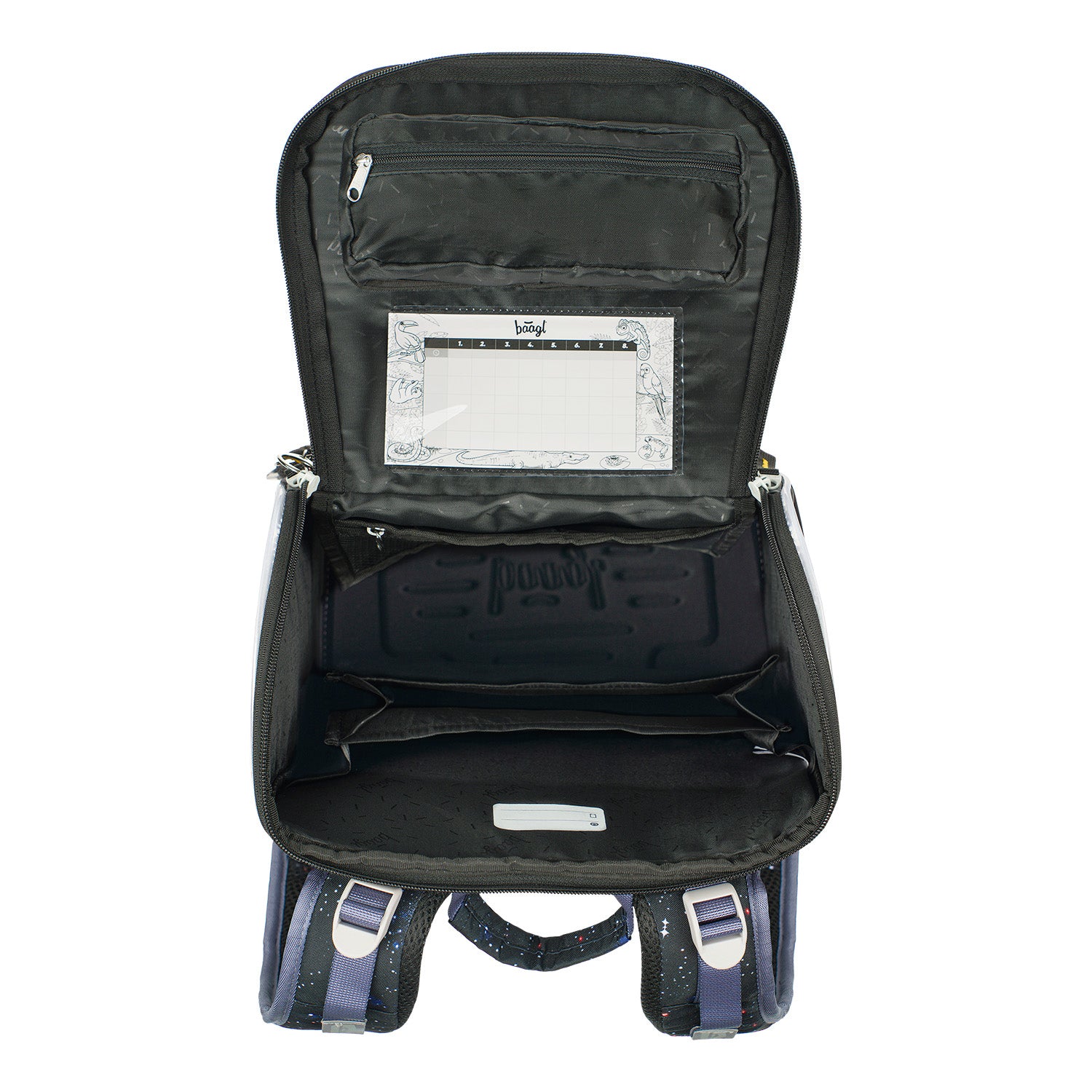 • Součástí penálu je také kapsička na drobnosti a okénko na rozvrh hodin.
