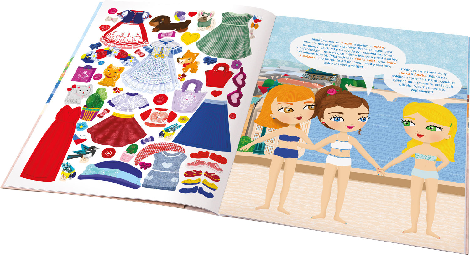 Oblíbená série minimiky přichází s další novinkou v podobě zábavné samolepkové knížky, v níž budou děti společně s panenkou Terezkou a jejími kamarádkami Kačkou a Aničkou objevovat nejznámější kouty našeho hlavního města Prahy, jedné z nejkrásnějších evropských metropolí. Známé pražské scenerie mohou děti doplňovat spoustou krásných samolepek podle vlastní fantazie a v knížce najdou také mnoho zajímavých informací o zdejších památkách, známých místech, ale také třeba o české kultuře.