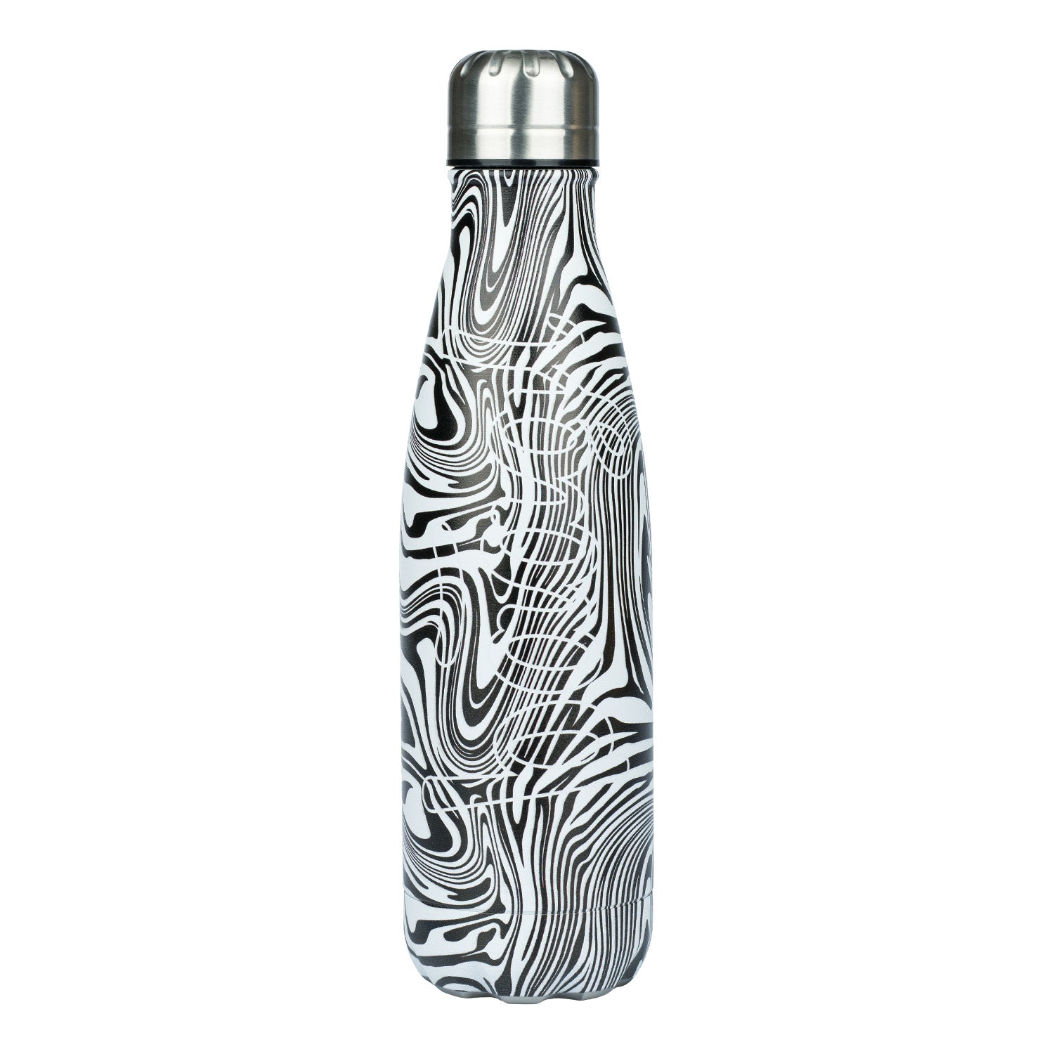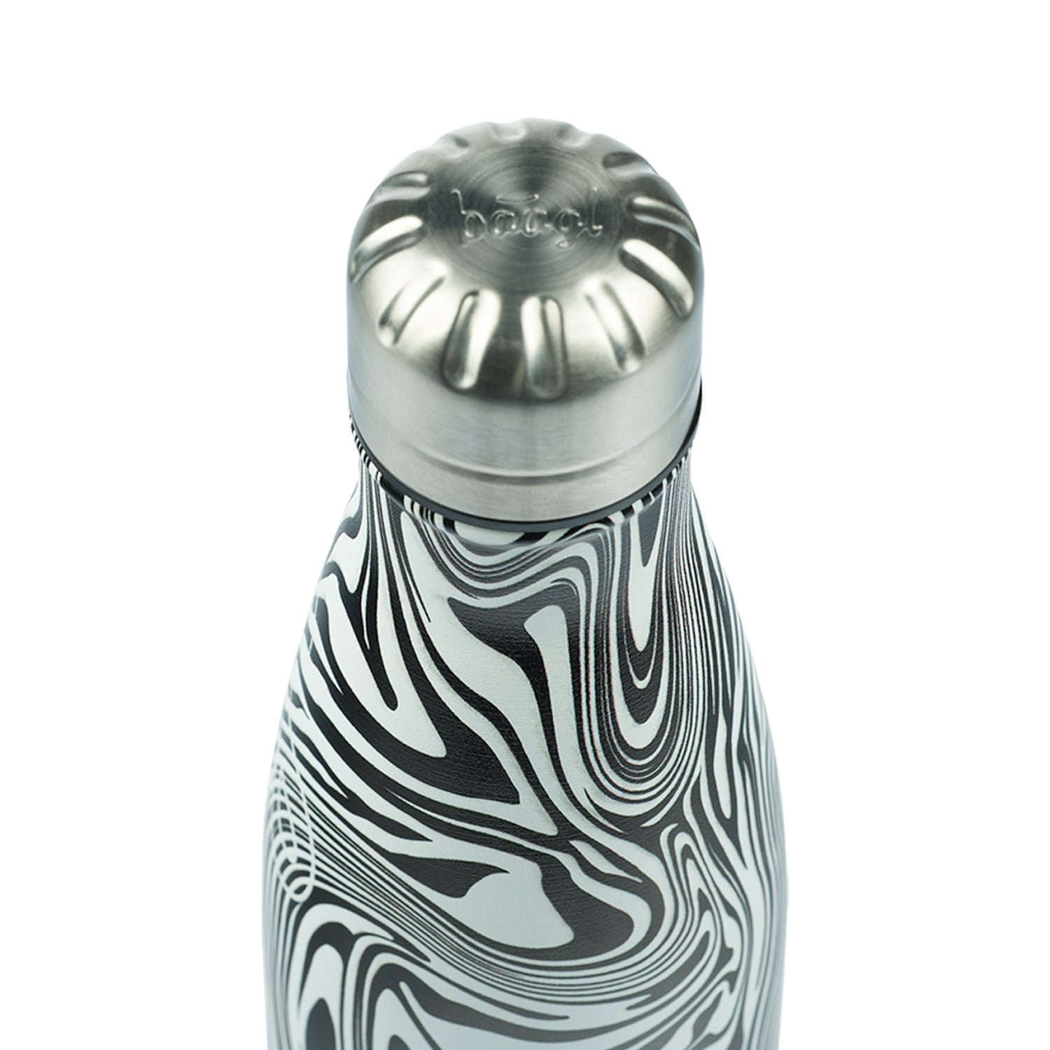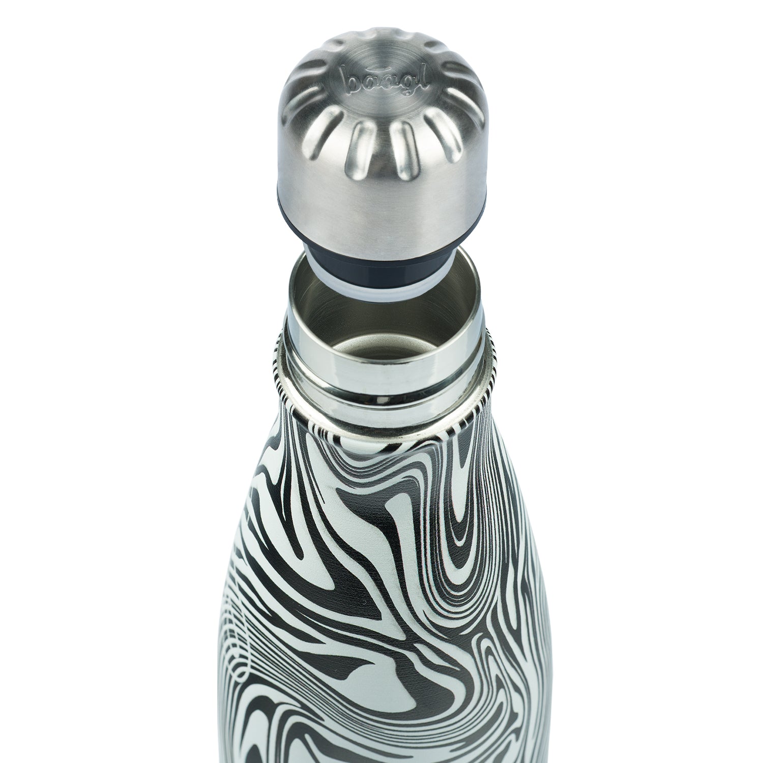 Designová termoláhev Mixture s abstraktním černobílým motivem, kovovým víčkem a logem BAAGL.