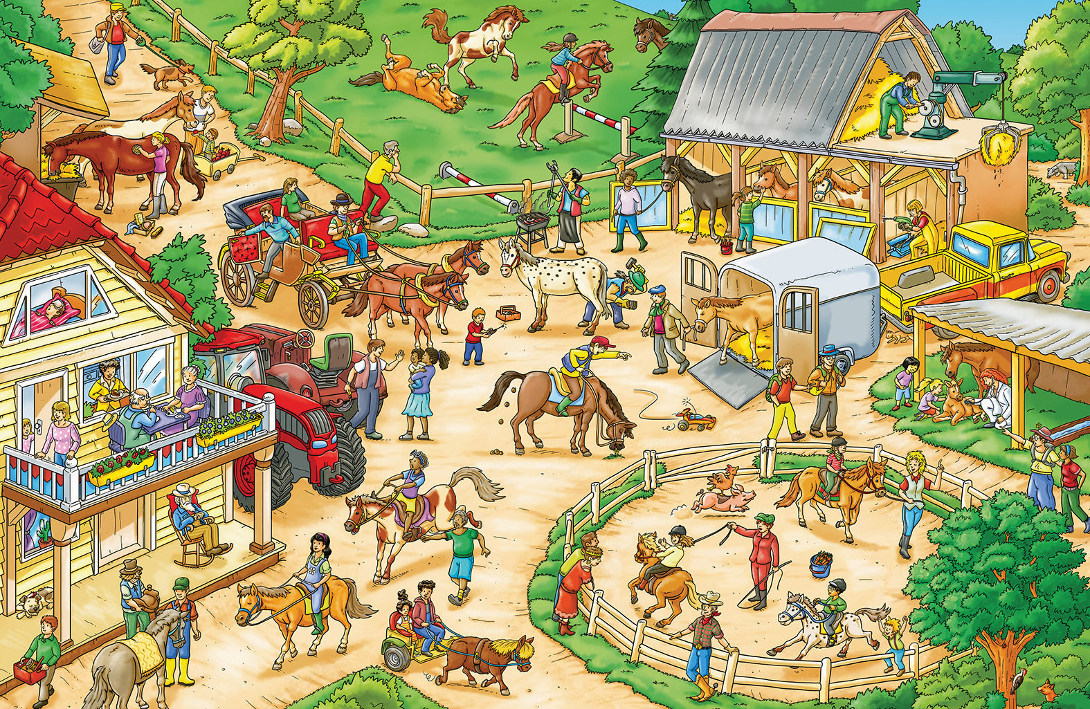 Vítejte na statku rodiny Sedlákových. Tahle velká obrázková knížka vás provede všemi kouty hospodářství a vy tu prožijete celý úžasný den! Poznáte zvířata, která zde žijí, lidi nejrůznějších profesí, kteří tady pracují a pomáhají. Budete sledovat impozantní zemědělské stroje při práci a také se bavit, třeba na jezdeckém turnaji nebo na koncertě. Některé postavičky a zvířátka můžete hledat na každé dvojstránce znovu a znovu a sledovat jejich příběhy. Je to docela fuška, ale hlavně velké dobrodružství a zábava!