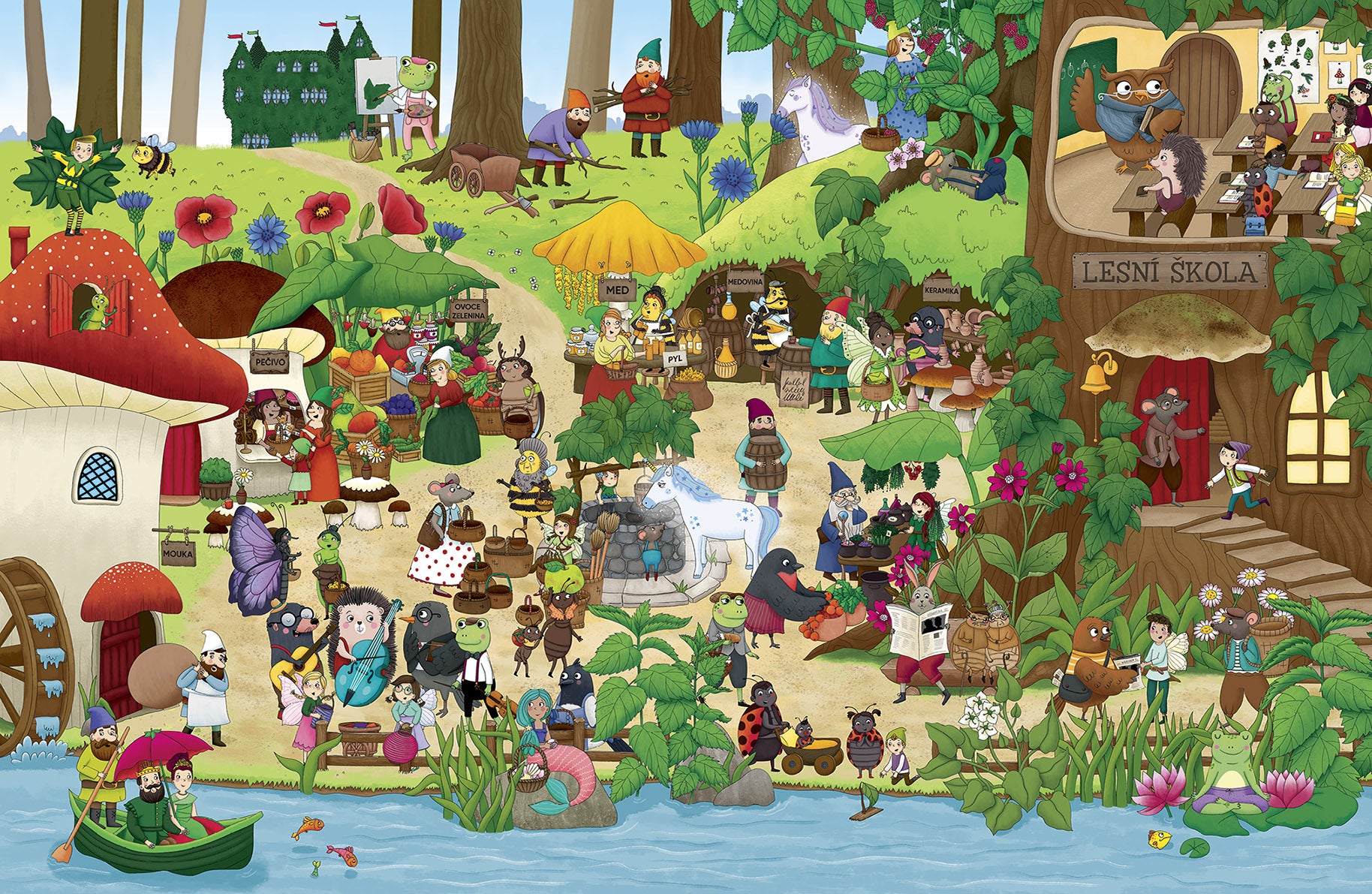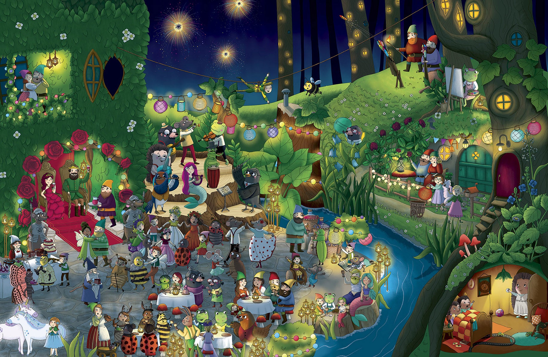 Nadešel letní slunovrat a ve světě skřítků a víl se všichni chystají na slavnost. Královský pár pozval úplně každého na velikou hostinu za doprovodu hudby. Od brzkého rána to kol kolem bzučí jako v úle a celá pohádková vesnička je na nohou v radostném očekávání slavnostního večera. Jen hvězdný jednorožec se netěší jako všichni ostatní. Cítí se totiž strašně osamělý. Naštěstí je tu květinová víla Pomněnka, která si předsevzala, že mu pomůže najít kamaráda. Podaří se jí to? Pokud budete mít oči na stopkách, možná jim dokážete pomoct i vy!