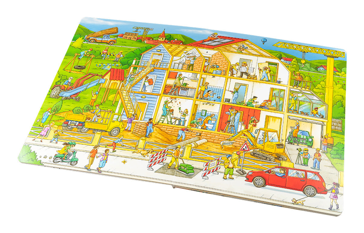 V centru města, na jeho okrajích, v parku, na řece – tam všude se kope, opravuje, rekonstruuje, zušlechťuje, staví… Náklaďáky, míchačky, bagry, jeřáby, vysokozdvižné vozíky a další zajímavé stroje pracují na plné obrátky a kolem nich panuje čilý ruch. Činí se tu pěkná řádka šikovných řemeslníků, jimž velí zkušený předák, a na všechno dohlíží stavbyvedoucí. Ruku k dílu přiloží i architekt, fotograf nebo třeba zahradník. A protože jsme ve městě, hemží se to tady i spoustou dalších postaviček. Všechny zažívají své vlastní mikropříběhy, o nichž si můžete donekonečna vyprávět. Některé z postav a strojů naleznete na každém obrázku v této knize – procvičte svou paměť a pozornost a stránku za stránkou „čtěte“ jejich dobrodružství v propracovaných ilustracích!