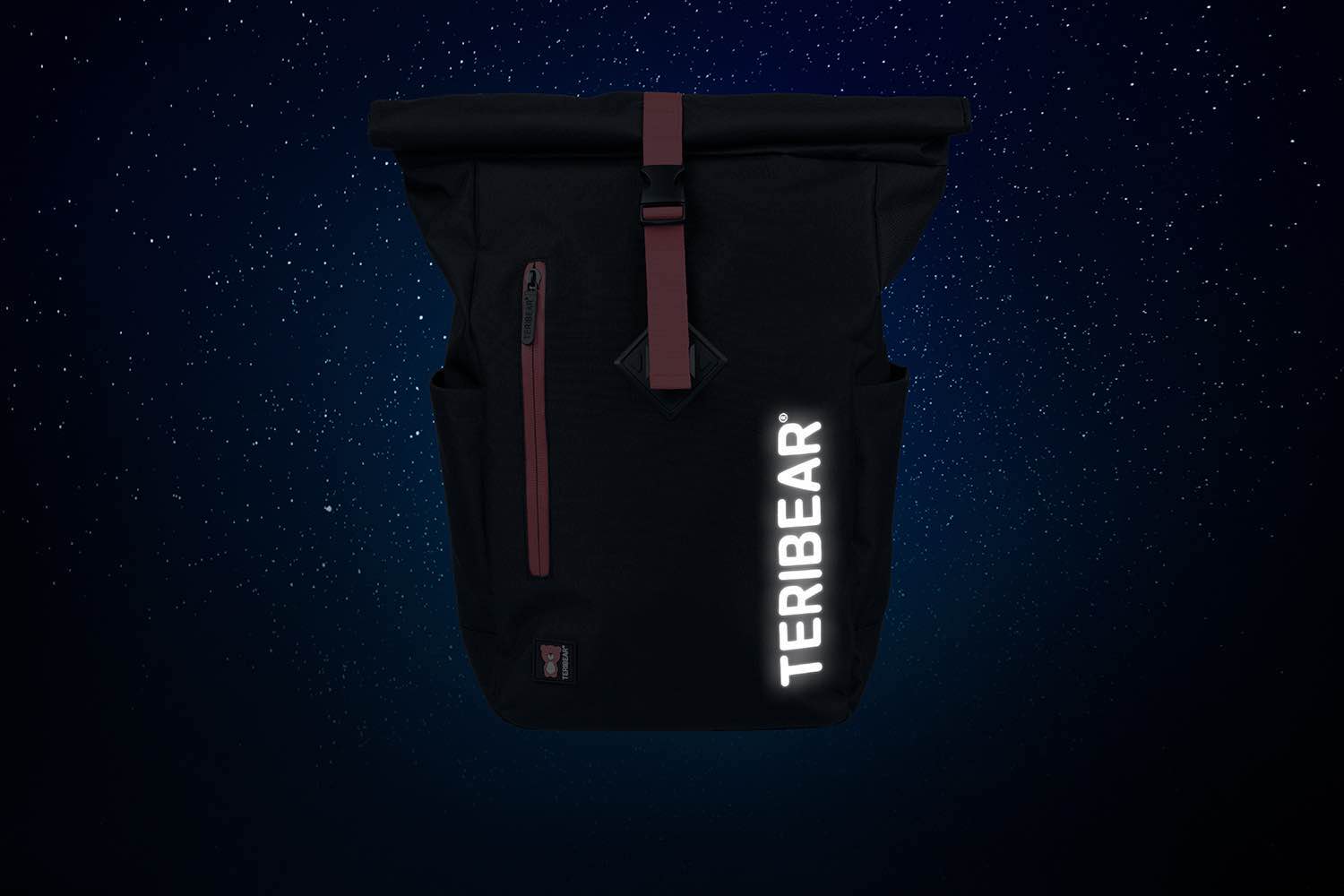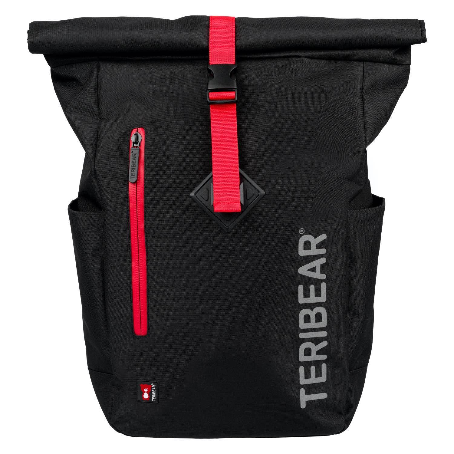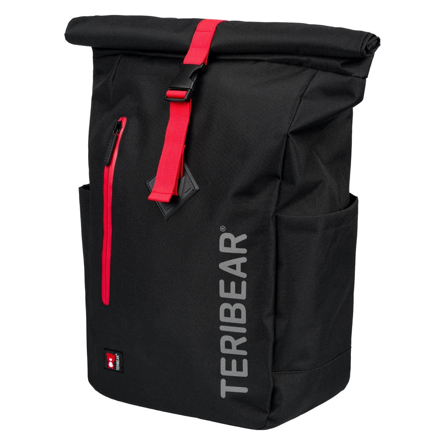 • Lifestylový roll-top batoh ušitý z pevného nepromokavého materiálu, doplněný o reflexní logo TERIBEAR.