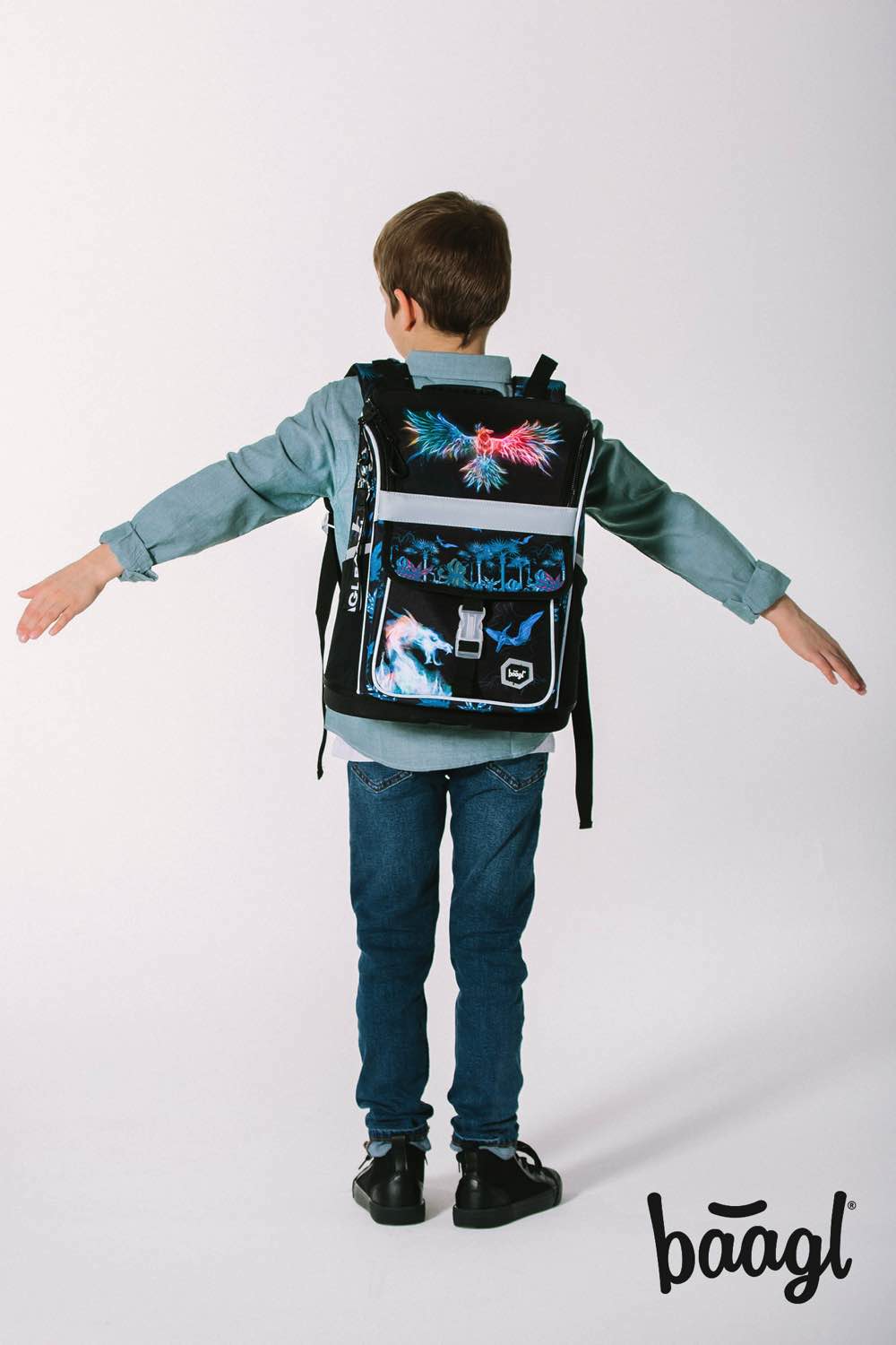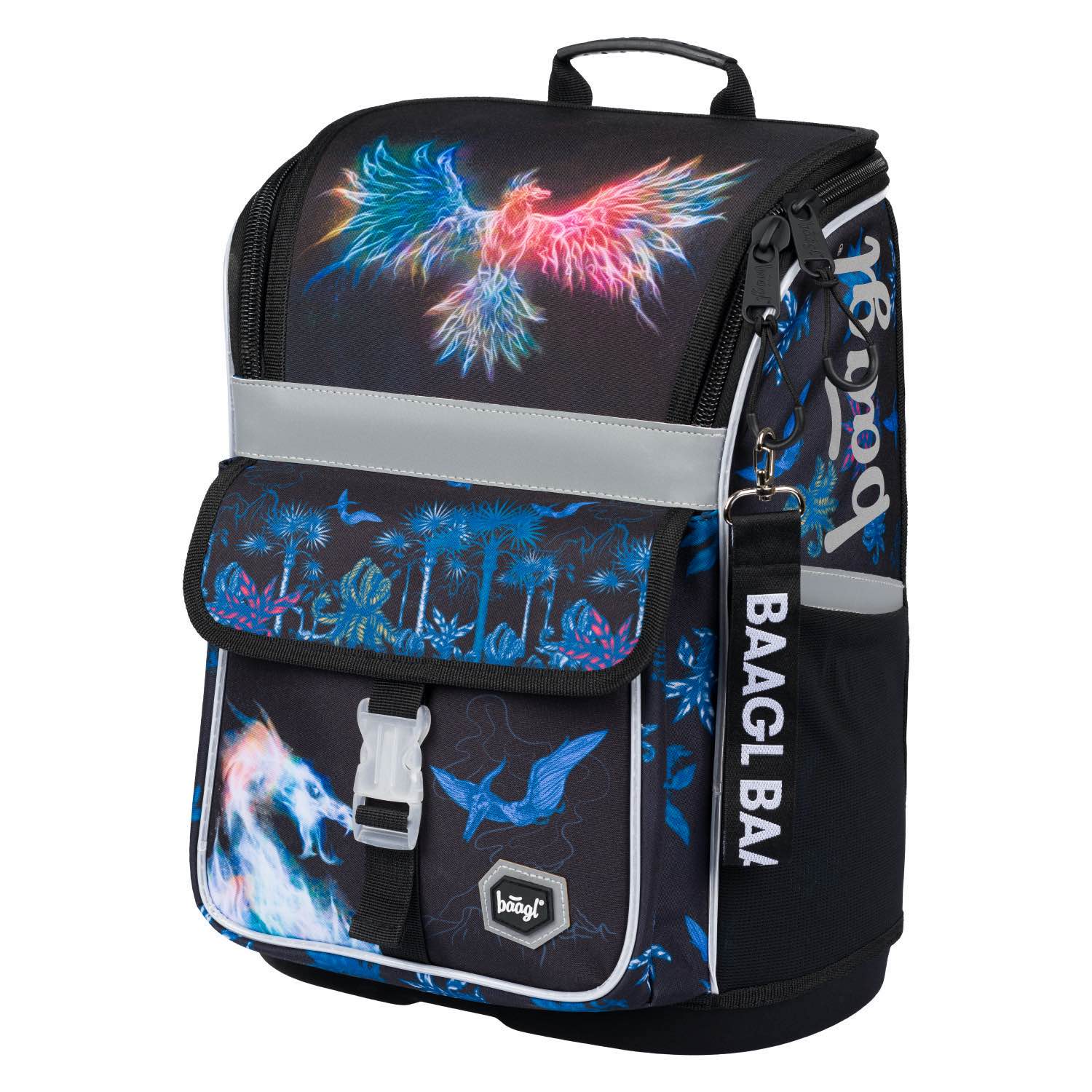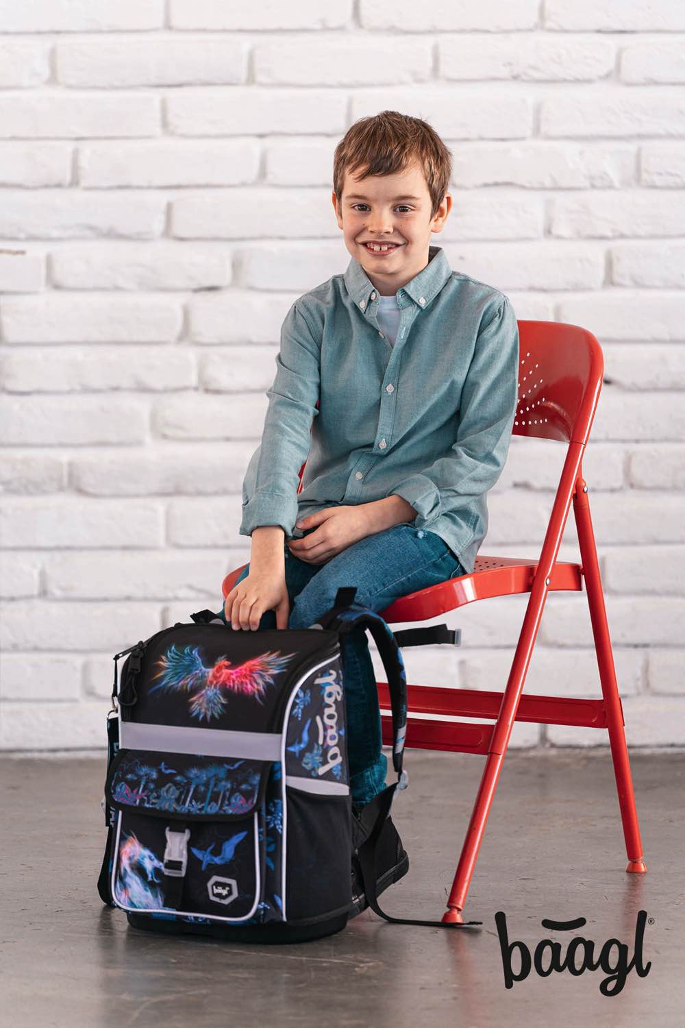 Černá aktovka Zippy Fénix s potiskem bájného Fénixe, vhodná pro 1. - 2. třídu základní školy.