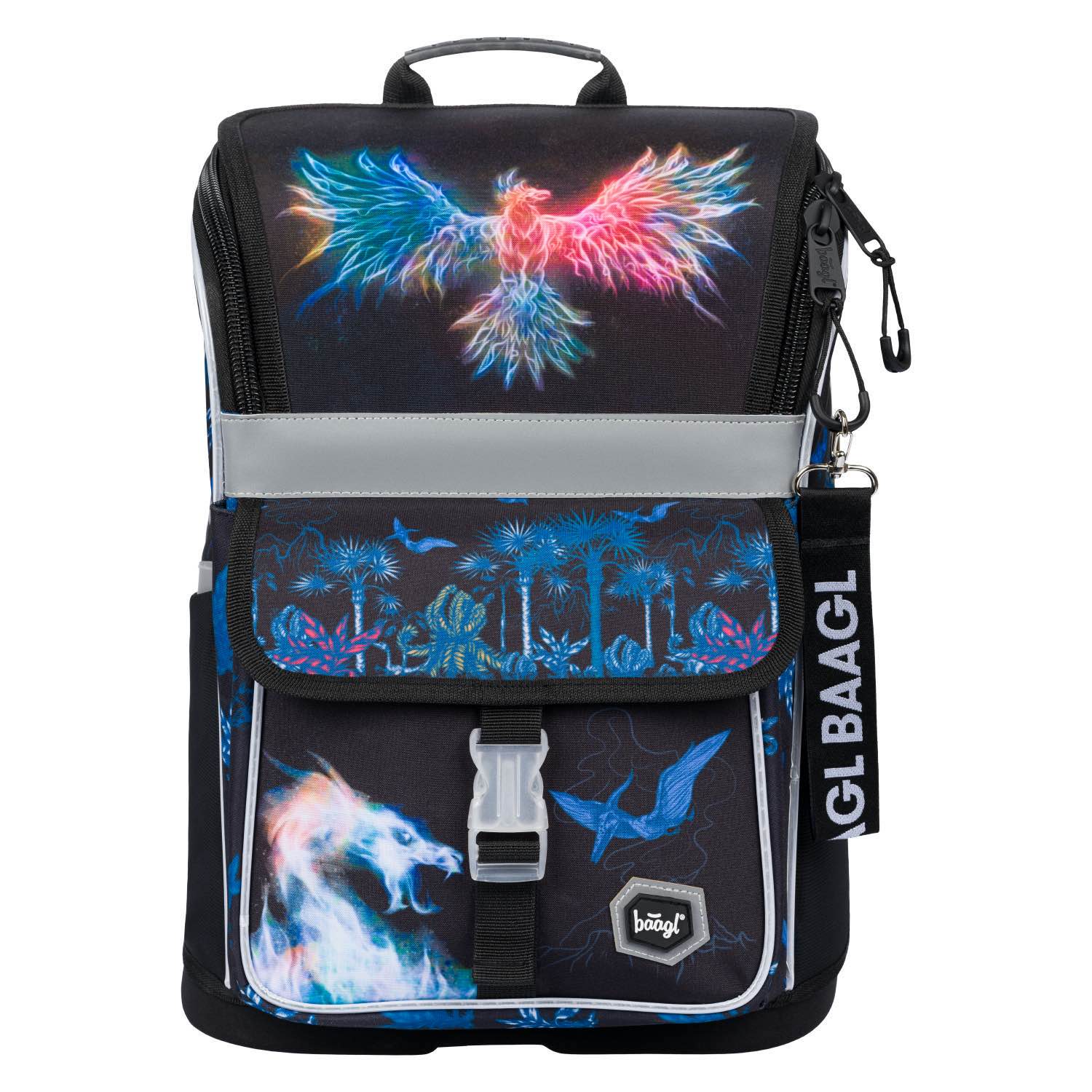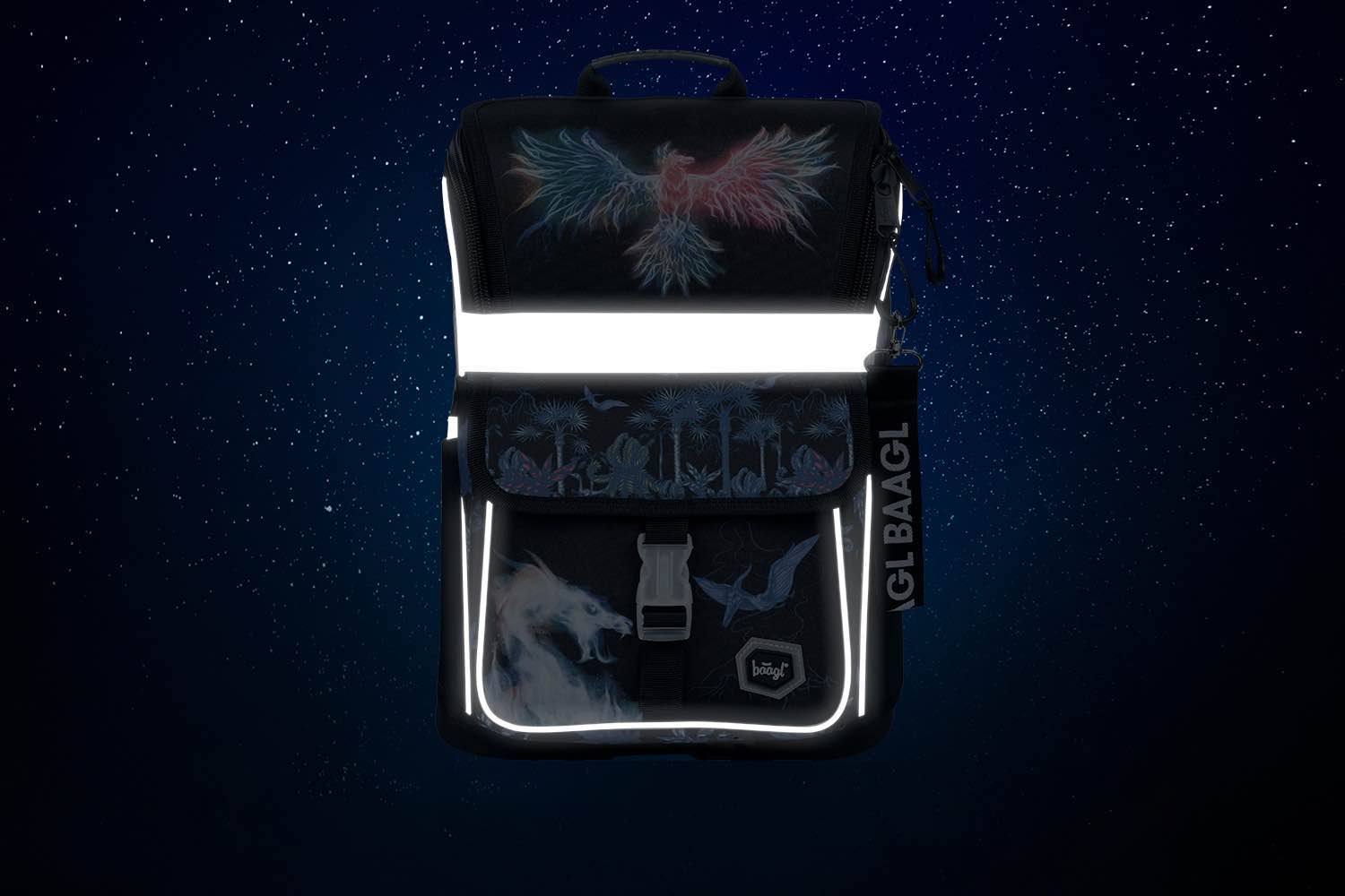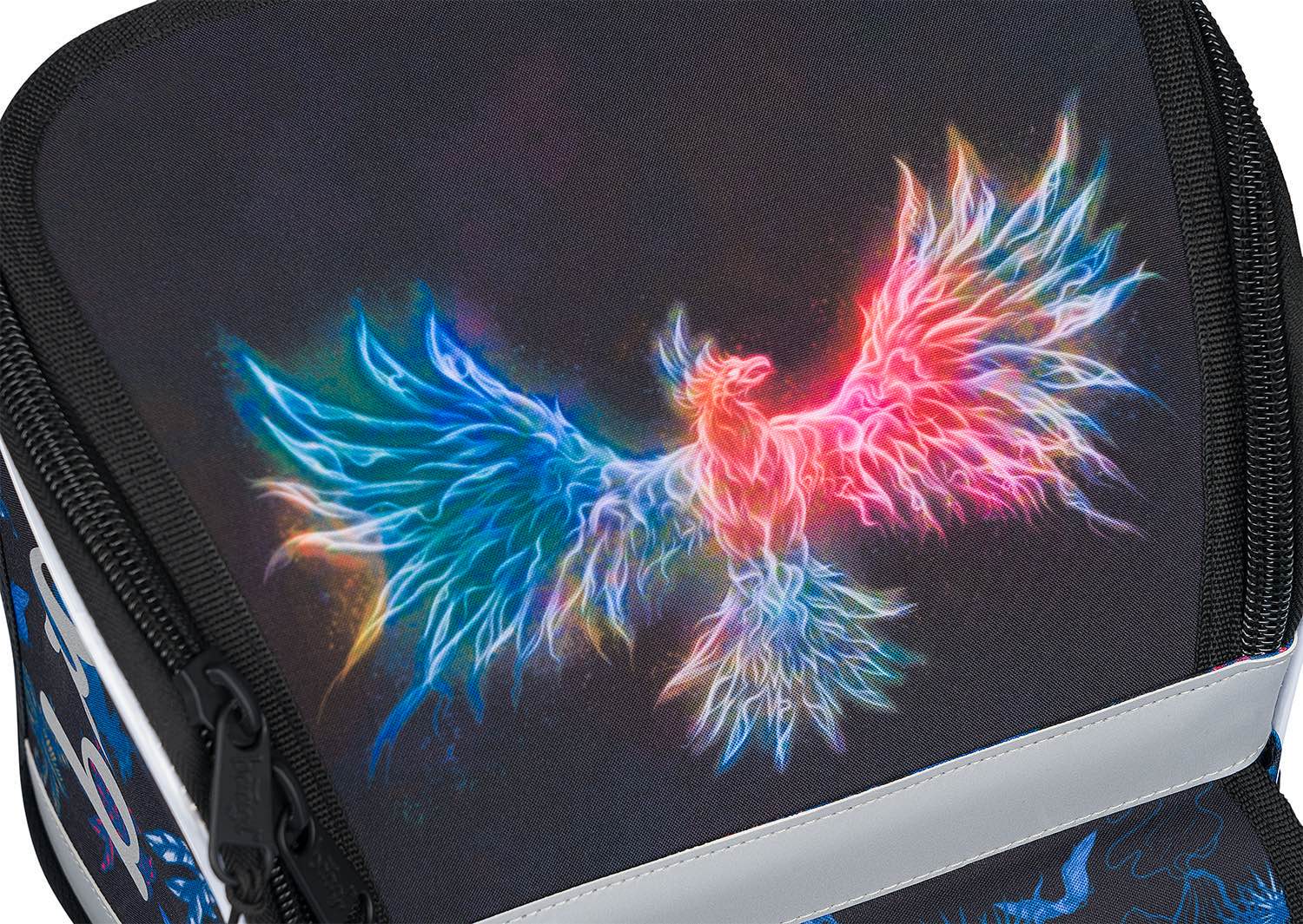 Černá aktovka Zippy Fénix s potiskem bájného Fénixe, vhodná pro 1. - 2. třídu základní školy.